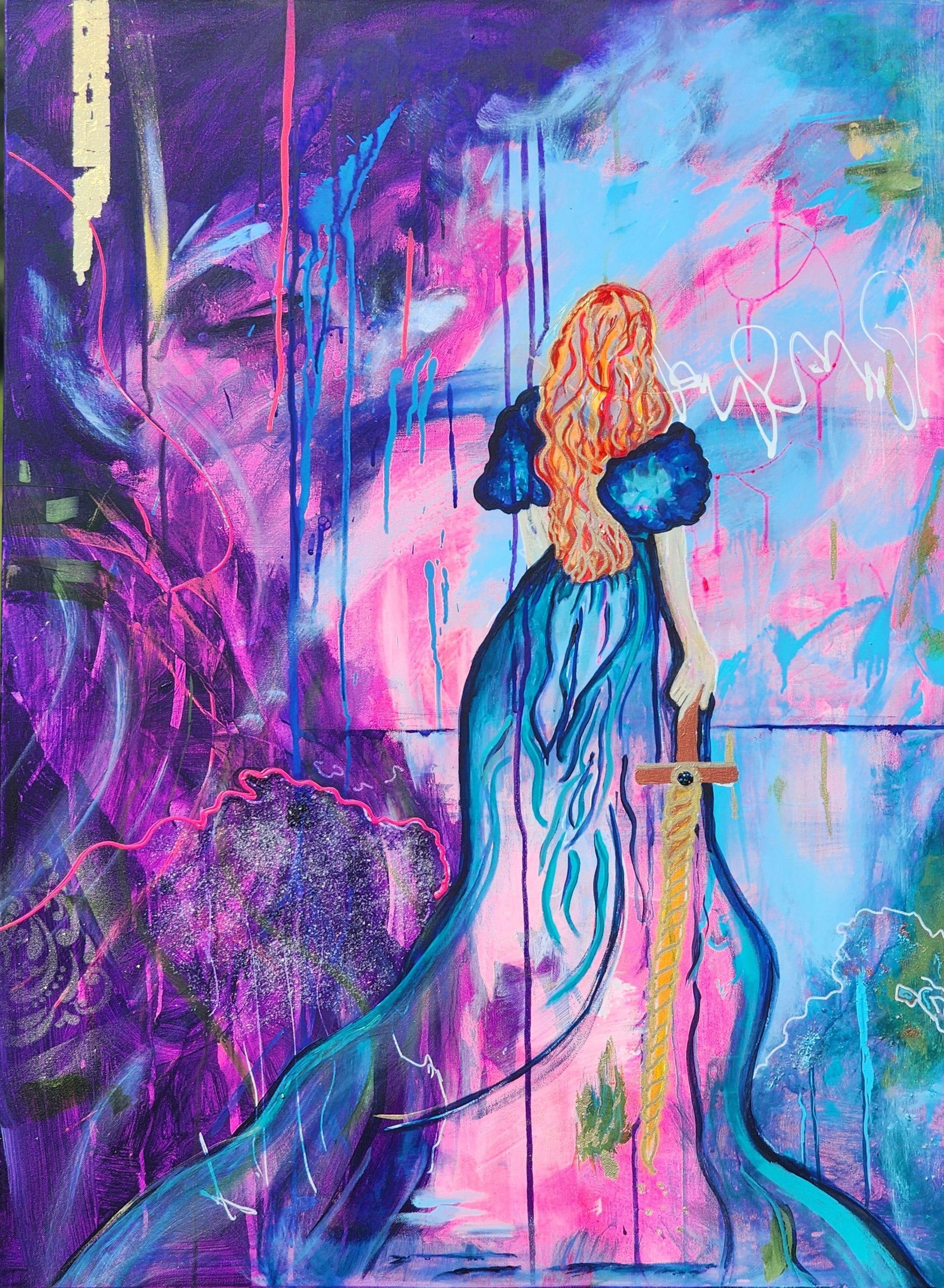 Abstract Realism | 30 x 40 | Acrylic on Canvas with Gold Leaf & Light Reflective Materials | On Exhibit At Emerald Coast Theater Company | Miramar Beach Florida | Thru January 2026